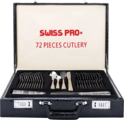 Swiss Pro+ – Bestekset – 12 Persoons – 72-delig – Luxe Opbergkoffer – 18/10 – Premium – Zilver