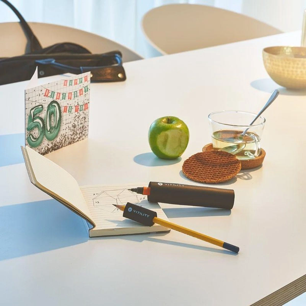 Met de foamgrips verdikt men elk willekeurig handvat, zoals van pennen, potloden, bestek of tandenborstel, waardoor men het voorwerp beter vast kan houden. Verkrijgbaar in 1 lengte van 12 cm, met diverse binnenmaten.