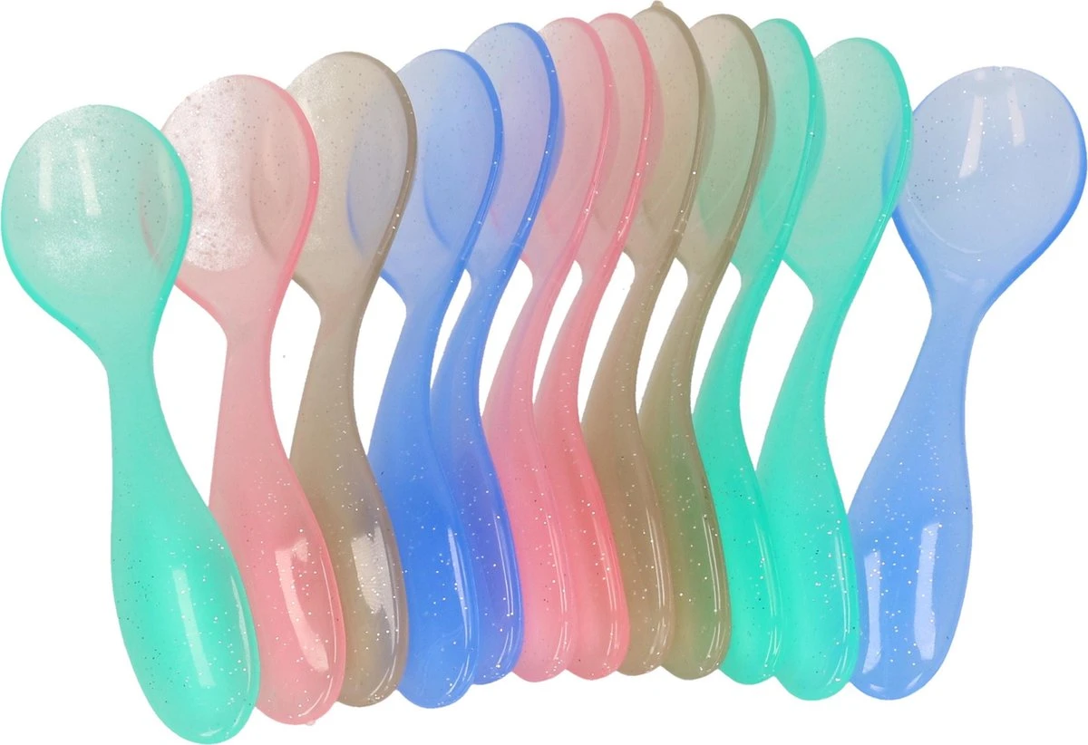 | Verpakkingsinhoud | 12 plastic eierlepels in verschillende kleuren |