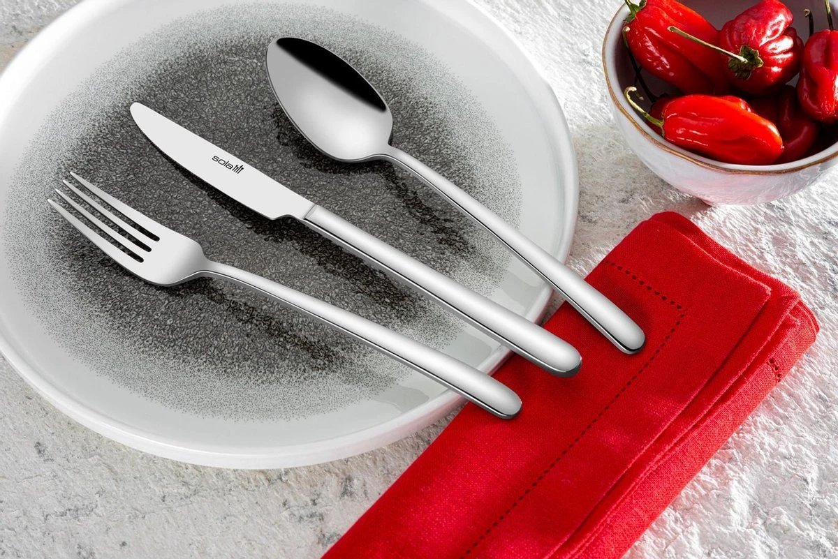 Sola Bestekset Donau – Modern – 12 Persoons – 64 Delig – Zilverwit Edelstaal 18/10 – RVS – Zilver