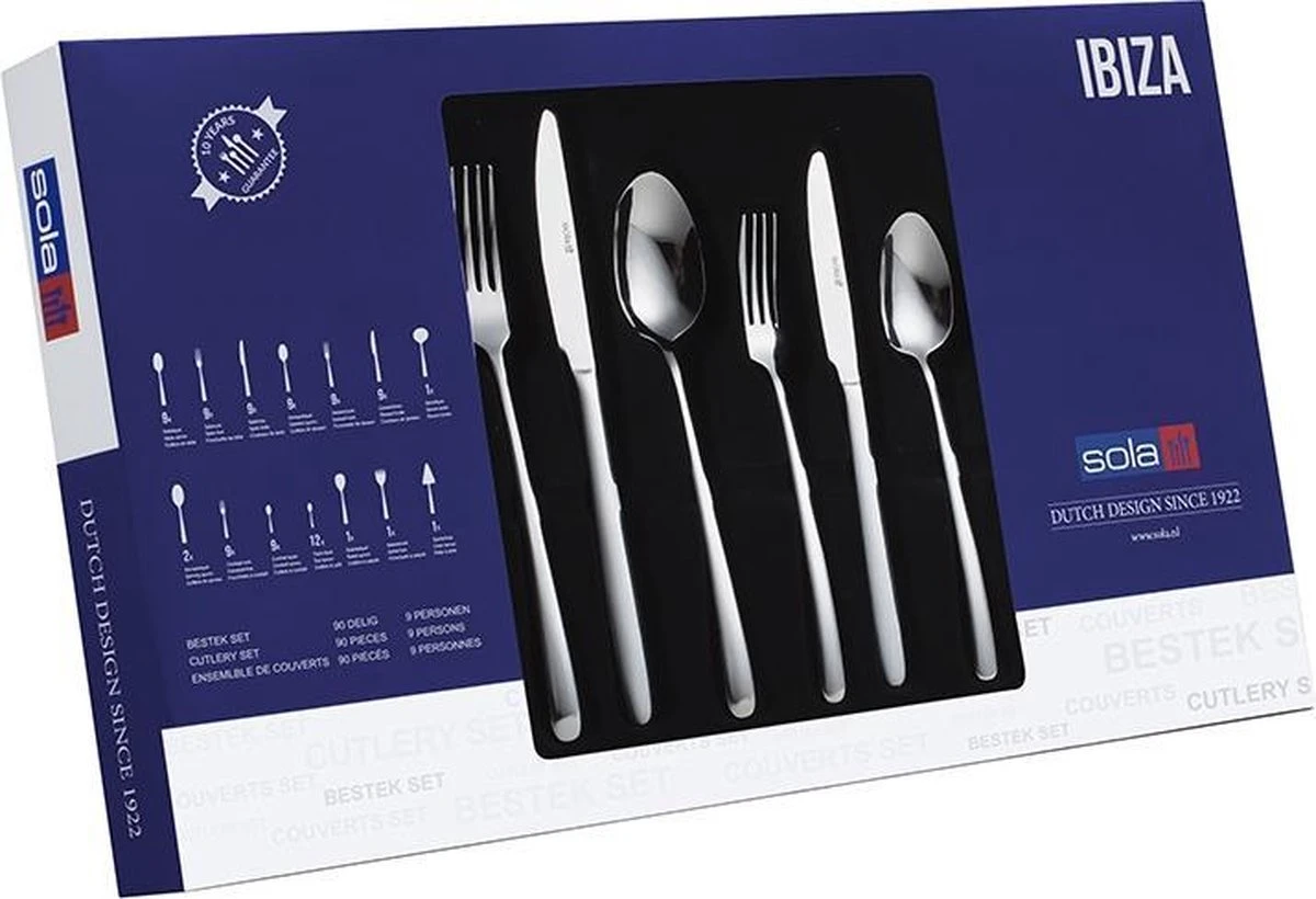 Sola Bestekset Ibiza – Economy – 9 Persoons – 90 Delig – Zilver Chroomstaal 18/0 – RVS